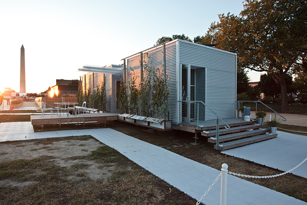 ZeRow house (a modern interpretation of the row house) was designed and built by the Rice Building Workshop as an exploration in pairing sustainability with affordability. The house was built on Rice campus (2008-9), moved and exhibited at the Department of Energy's Solar Decathlon in washington DC (2009) and re-installed in its final location at Project Row Houses in Houston's Third Ward (2010).