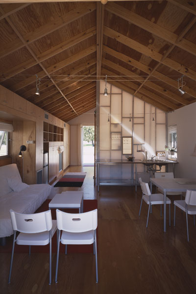 An adjustable footing/foundation system lifts the building off the ground (like its neighbors on concrete block footings) and if needed, may be adjusted for Houston's expansive soils. Hardiplank walls and metal windows are used instead of wood to reduce future maintenance. The core of the house is wrapped in polygal (which distributes light from the center of the house) and its placement divides the building envelope into "large" and "small" rooms that may be furnished in a variety of ways. All storage and services are collected in the thickened west wall and porches offer places for gathering, extending the interior living areas.